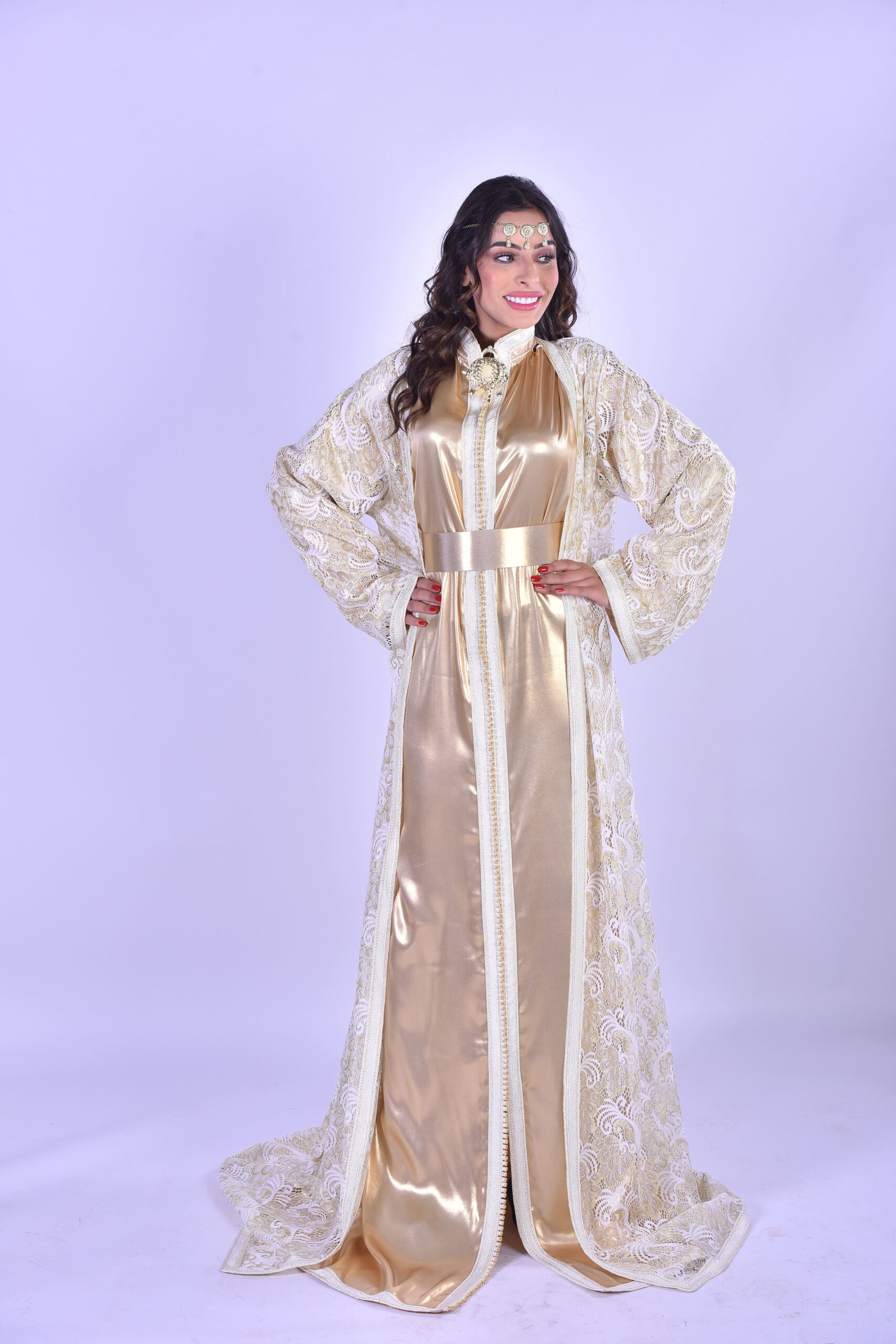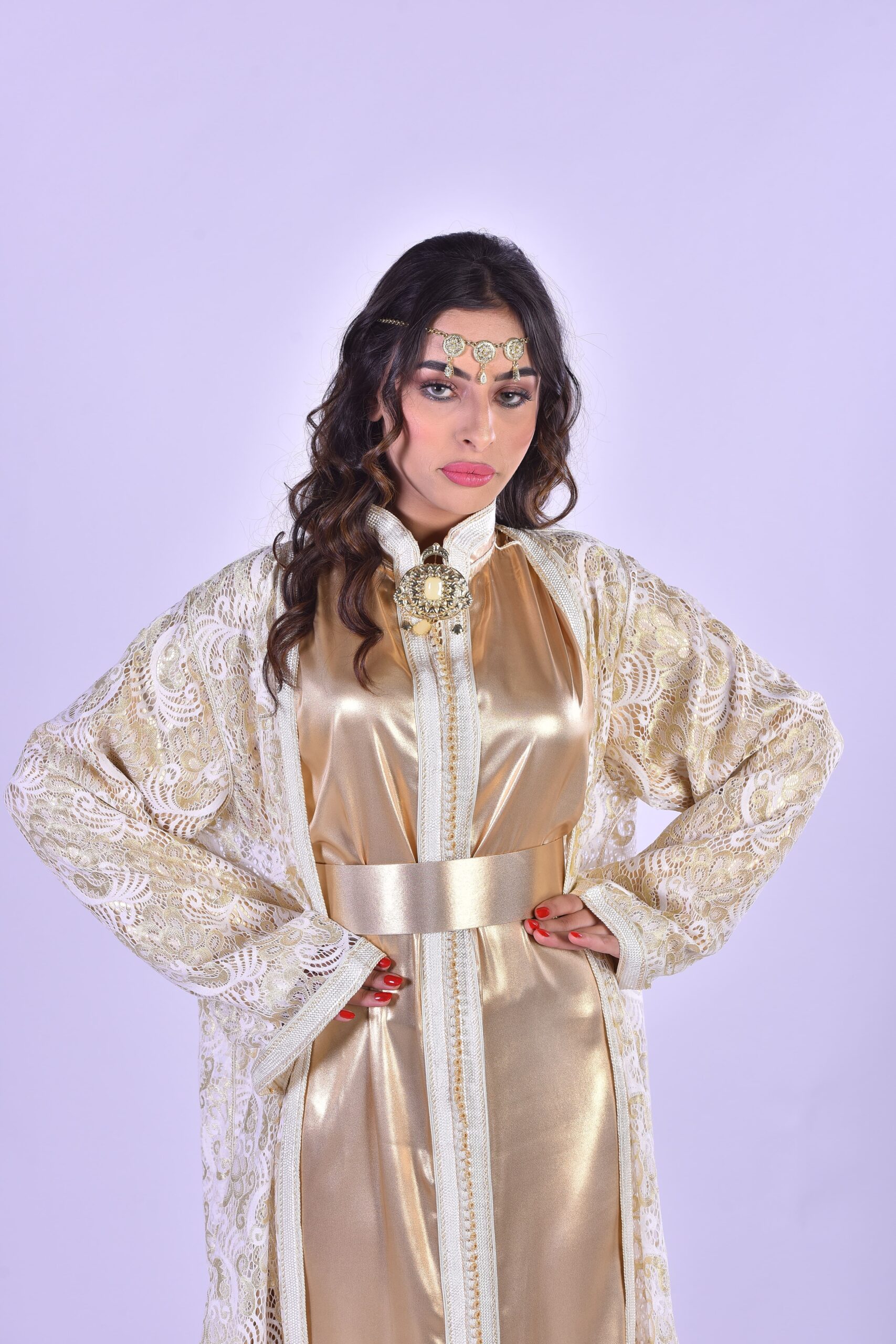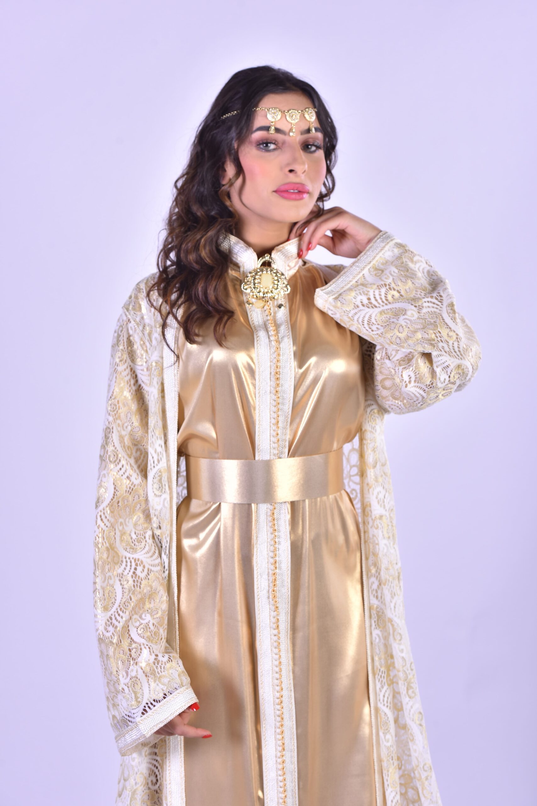 Be the first to review “Caftan Éclat d’Or Satin et Dentelle”