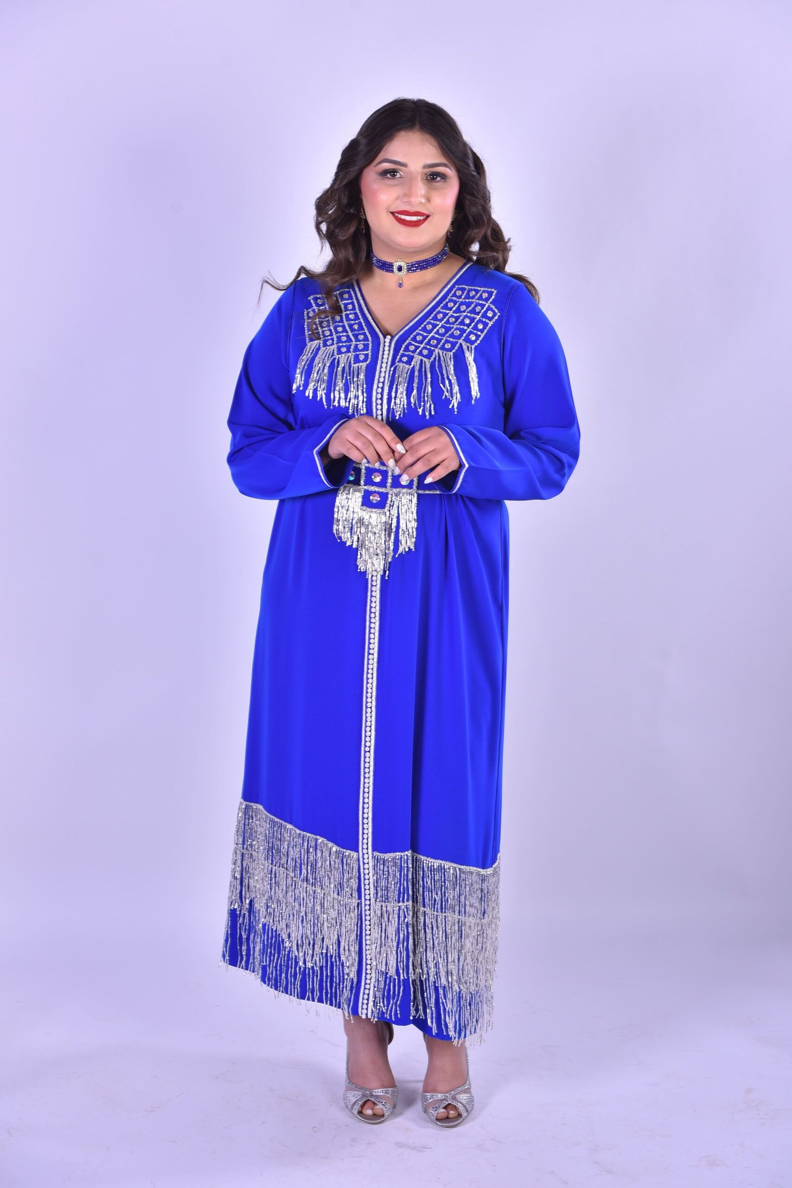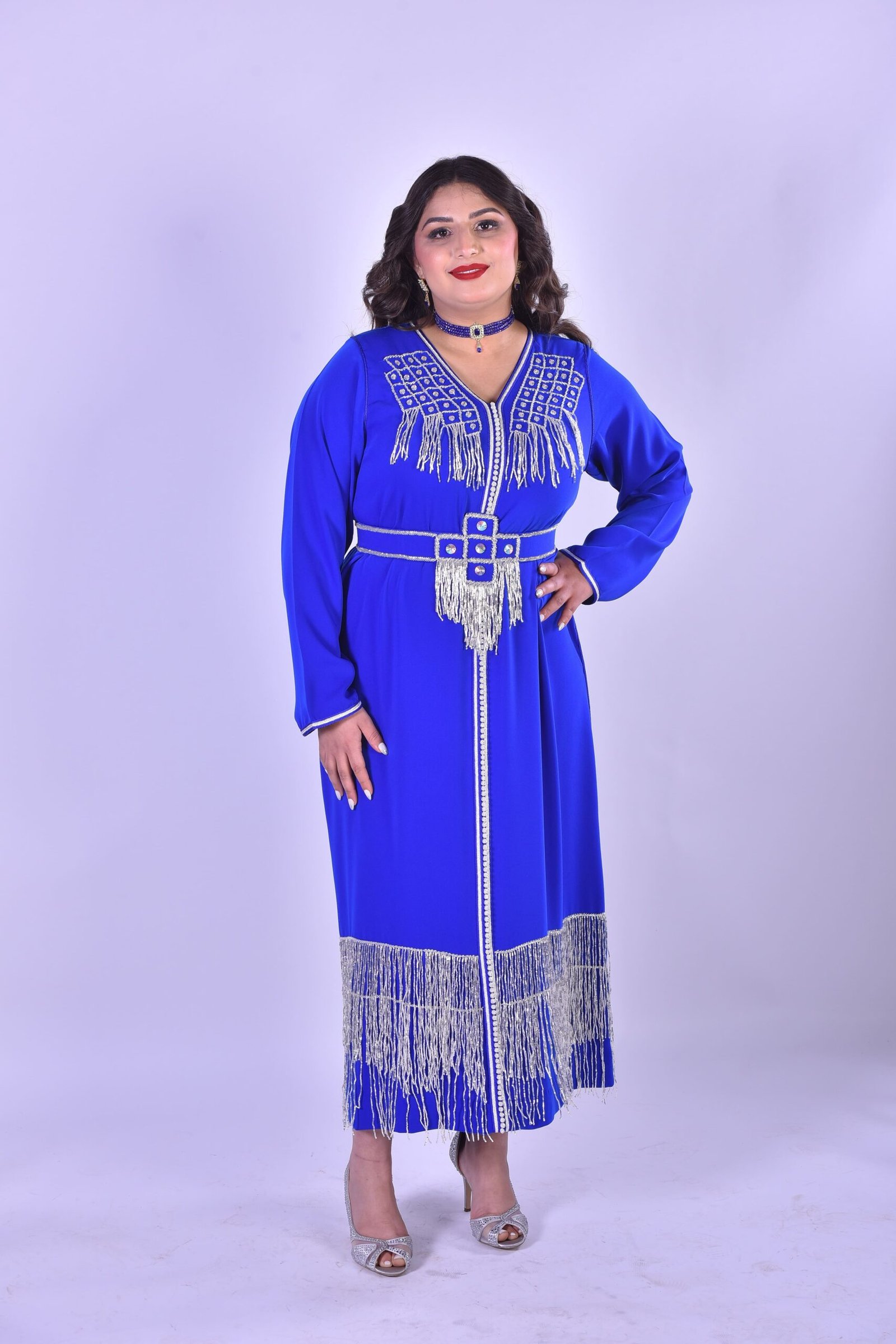 La Djellaba Royale Bleue à Broderie Argentée incarne le pont parfait entre le passé et le présent, entre l’artisanat traditionnel marocain et les tendances contemporaines. Que vous cherchiez à ajouter une touche culturelle exotique à votre garde-robe ou à faire une déclaration de style unique, cette création est faite pour vous. Grâce à son design intemporel et sa qualité exceptionnelle, elle est destinée à devenir un classique incontournable, transmis à travers les générations.
